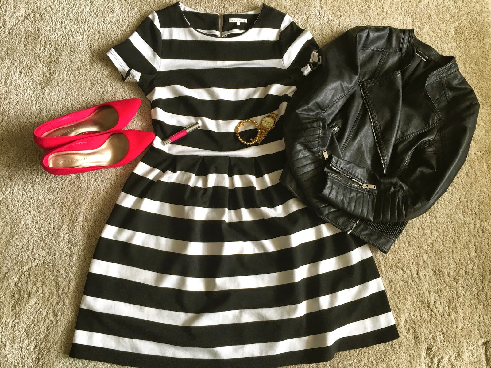 Dodatki: Złoty zegarek Michael Kors, złota bransoletka Mokobelle
