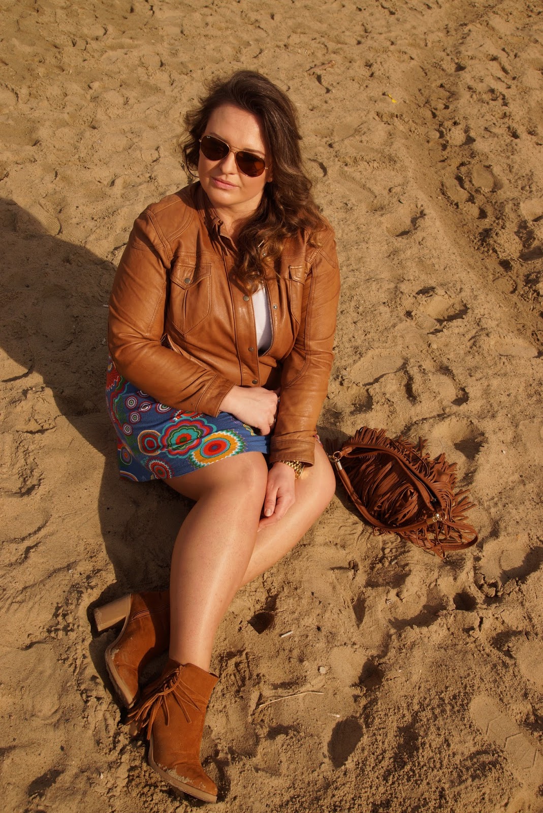 Moja kompozycja, to znowu bardziej klasyk, bo chcę Wam pokazywać stylizacje do założenia, a nie oglądania. Dodatkowo kompletuję je z powtarzających się elementów garderoby, żeby pokazać, jak można ułatwić sobie życie dobrymi i uniwersalnymi wyborami. Motywem przewodnim są brązy, biel i kwiecista spódnica, a całości festiwalowego looku dopełniają frędzle. Podobno już się nie nosi butów do torebki lub odwrotnie, ale samo się prosiły. 😉 Ciekawa jestem, jak Wam się spodoba moja propozycja, bo zupełnie odbiega od dotychczasowych stylizacji. 😉