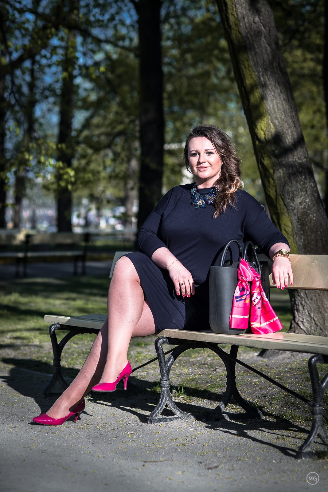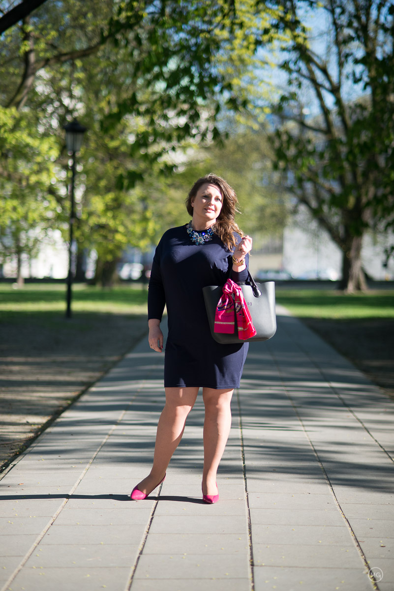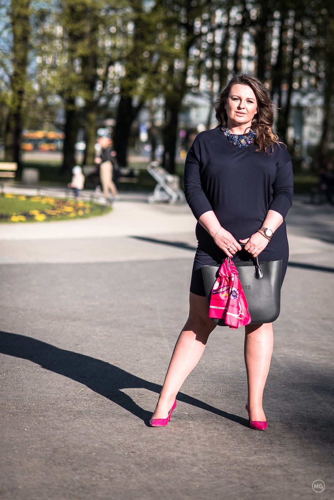 W jednym z poprzednich wpisów (kliknij tutaj) prezentowałam oversize’ową sukienkę, która dzięki odpowiednim dodatkom, może być bardzo kobieca. Taki materiał też pięknie układa się na kobiecych kształtach i według mnie pozostawia właściwą proporcję pomiędzy sportowym i eleganckim stylem. Jednak wiele z Was, pomimo oversize’owego kroju sukienki, stwierdziło, że była odrobinę za odważna. Dlatego dzisiaj chcę Wam pokazać model tej samej marki Inna Ty, który poprzez swój kolor i zabudowany dekolt, może dać większy komfort i swobodę. Mam oczywiście na myśli Wasze samopoczucie, bo w takim materiale nie można się czuć nie wygodnie. 😉 Jest elastyczny, miły, miękki, dopasowujący się do ciała. Ten zabudowany dekolt bardzo mi pasuje, bo mogę do niego dodawać duże, wyraziste naszyjniki. Sukienkę noszę zarówno do obcasów, jak i do trampek. I powiem Wam, że musi w niej coś być, bo wiele kobiet mnie o nią pyta, jak tylko ją założę. Ciekawa jestem jak Wam się spodoba. :)Na koniec chciałam tylko powtórzyć to, do czego często namawiam kobiety: dziewczyny, noście sukienki. Jest ich taka ilość i taki wybór, że naprawdę już nie można narzekać na brak w sklepach. Jabłko, gruszka, czy też banan, każdy typ sylwetki coś dla siebie dobierze, chociaż nie jestem fanką tej klasyfikacji. 😉 Ta sukienka jest chyba najbardziej zachowawcza, wśród prezentowanych przeze mnie na blogu, ale tym samym daje ogromne możliwości doboru dodatków i okazji, na które się ją wybierze. I jeśli nie macie się w co ubrać, nie macie pomysłu (lub nie znacie mojego bloga ;)), to nie utrudniajcie sobie życia dobieraniem zestawów. Idźcie na łatwiznę i noście sukienki. Kobieta ma tak dużo pięknych fragmentów ciała, które może wyeksponować nawet, gdy nie czuje się ideałem. I wiem, że ubieracie się dla siebie, ale nie znam mężczyzny, który nie uwielbiałby oglądać kobiety w sukience… 😉