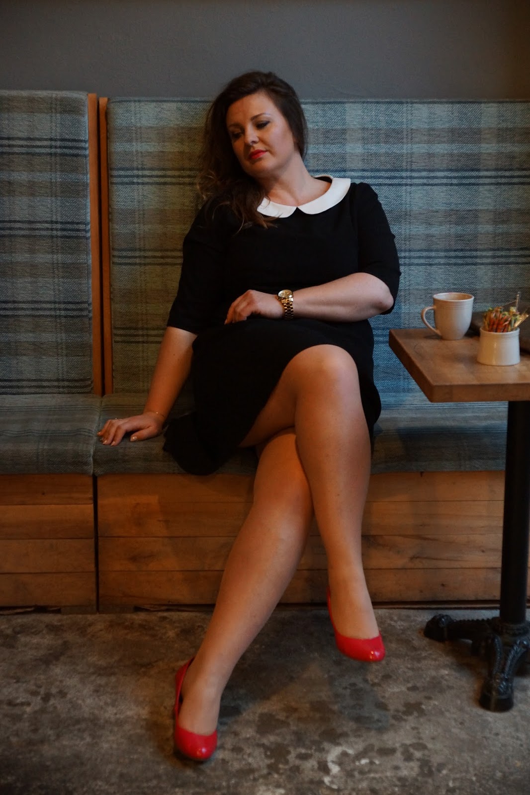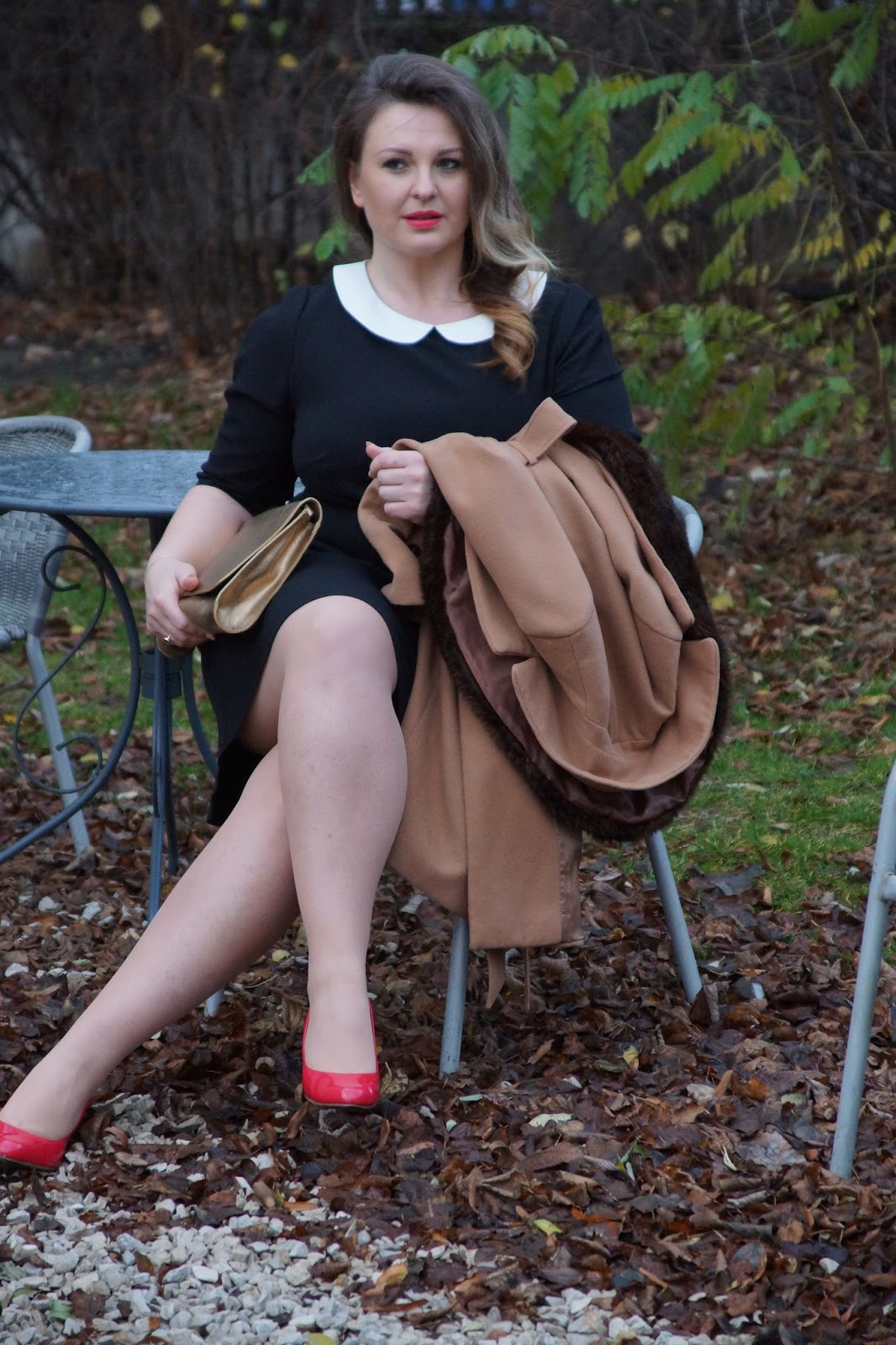 Takiej sukienki szukałam miesiącami. I już dokładnie wiedziałam do czego ją założę, więc gdy w końcu stałam się jej posiadaczką, nie miałam kłopotu z dobraniem dodatków. Czerwona szminka i szpilki dodają tej grzecznej stylizacji trochę temperamentu. Jak dla mnie okazji na które można założyć tę sukienkę jest wiele, ja między innymi wystąpię w niej na Święta. 🙂 Możecie spokojnie nosić ją również do pracy, tylko dodać stonowane dodatki.