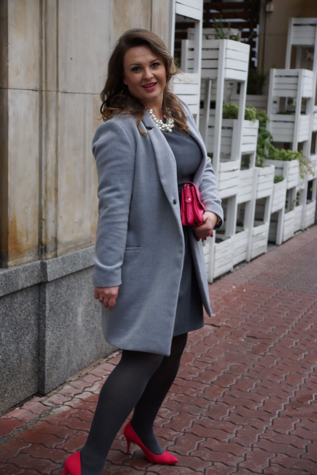 Jak wiecie zostałam niedawno zaproszona do odwiedzenia atelier Maua, z którego wyjechałam z dwiema sukienkami i nową wiedzą o swojej sylwetce. 🙂 Od teraz już wiem, że mam sylwetkę „kolumnę” i już rozumiem o co chodzi, jak mówi się posągowa uroda. 😉 Sukienki Maua są bardzo klasyczne, proste i eleganckie. To coś, czego brakuje często w naszych szafach, bo szukamy w sklepach fajerwerków, a według mnie to nie ma sensu. Dzisiaj chcę Wam pokazać, jak można zbudować efekt fajerwerków bazując na szarej, prostej, trochę wręcz biurowej sukience. Ci, którzy mnie już znają, wiedzą, że uwielbiam łamać klasyczne ubrania kontrastowymi i odważnymi dodatkami. I w tym przypadku od razu miałam taki pomysł, żeby dodać trochę awangardy przez różowe dodatki, które kocham. 😉